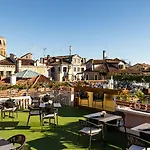 Hotel A La Commedia má rovnou střechu k opalování a sluneční terasu.
